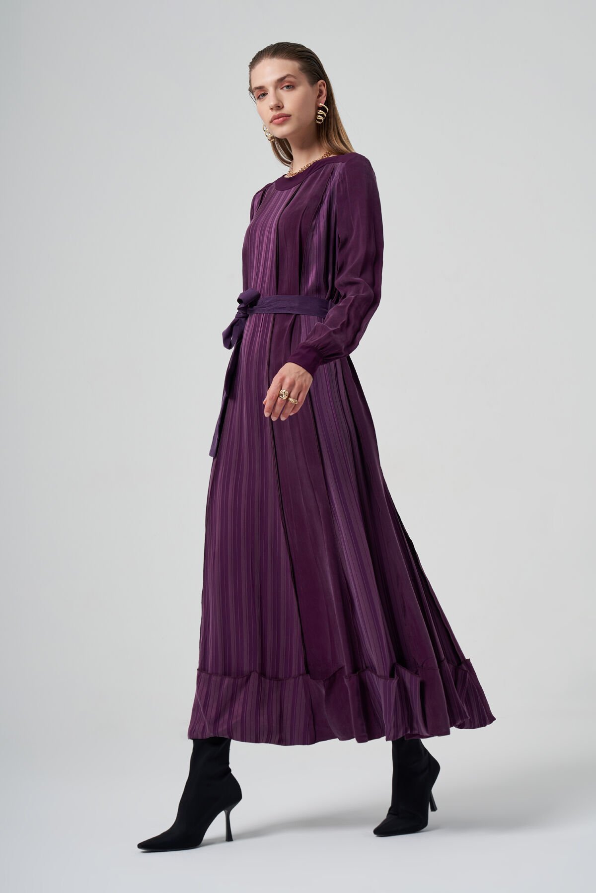 Etek Ucu Detaylı Cupro Elbise