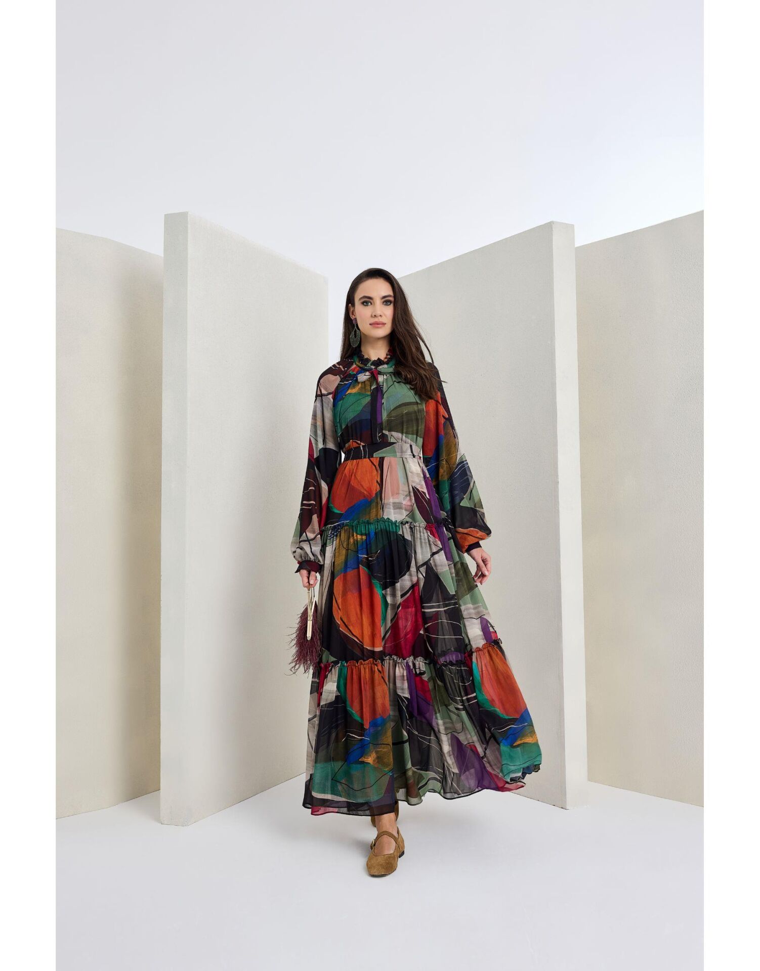 Desenli Kloş Elbise